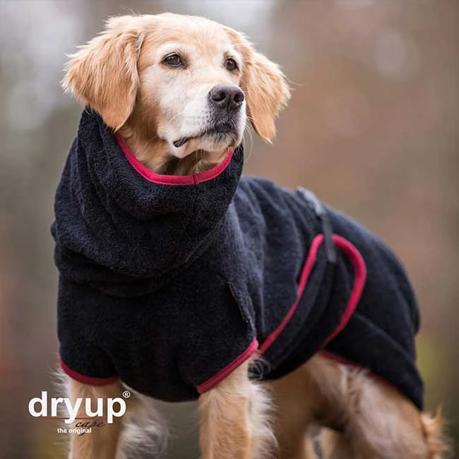 Mit dem genialen DRYUP CAPE kann das Fell des Hundes nach einem Spaziergang im Regen, nach einer Dusche oder nach dem Schwimmen schnell und einfach getrocknet werden – ganz ohne Rubbeln!