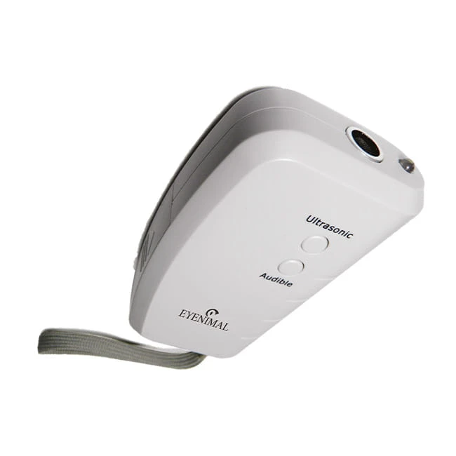 Dieses kompakte Gerät gibt auf Knopfdruck einen für Hunde unangenehmen und lauten, jedoch ungefährlichen Ultraschallton ab und schreckt sie somit ab.