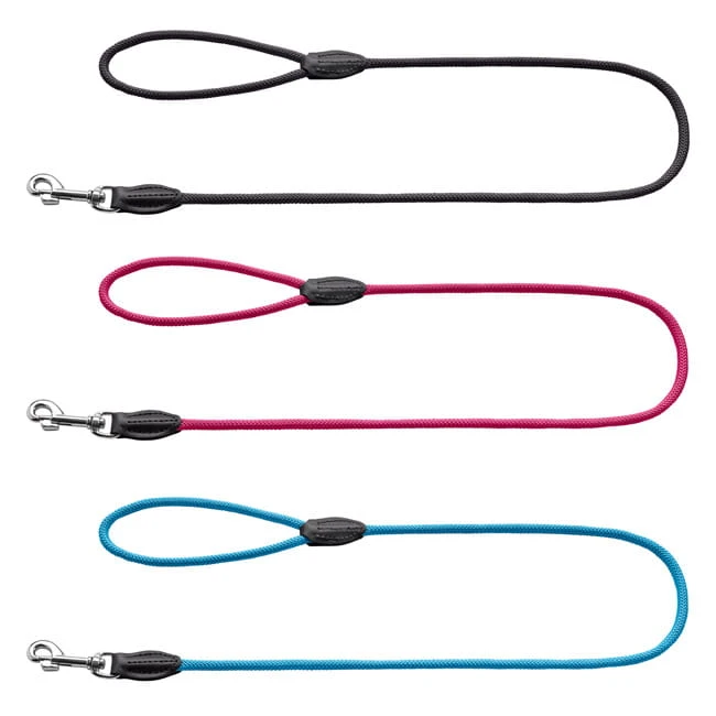 Falls du eine Leine suchst, die gut in der Hand liegt, strapazierfähig und pflegeleicht ist, dann empfehlen wir die Führleine FREESTYLE mit Polyamid-Kern. Zusätzlich ist diese Leine noch ein echter Hingucker.