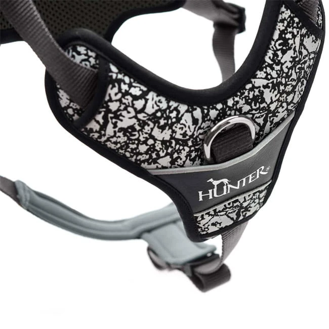 Der unübersehbare Allover-Print im Camouflage-Stil reflektiert stark und ergänzt die Wirkung des umlaufenden 3M™ Scotchlite™ Reflective Material optimal. Die Serie DIVO steht für 100 Prozent Komfort, denn die atmungsaktive Polsterung aus weichem Mesh-Material schmeichelt Haut und Fell des vierbeinigen Begleiters. Ein besonderes Feature dieses komfortablen Y-Geschirrs ist der zweite D-Ring, der ein Anleinen im Brustbereich ermöglicht. Ob an einem oder -für maximale Kontrolle- an beiden Fixpunkten angeleint werden soll, bleibt dem Hundehalter selbst überlassen. Dank der 5-fachen Verstellmöglichkeit lässt sich das Geschirr Divo Reflect ganz individuell auf die Bedürfnisse und den Körperbau des vierbeinigen Begleiters anpassen und sitzt bei richtiger Handhabung wie eine zweite Haut.