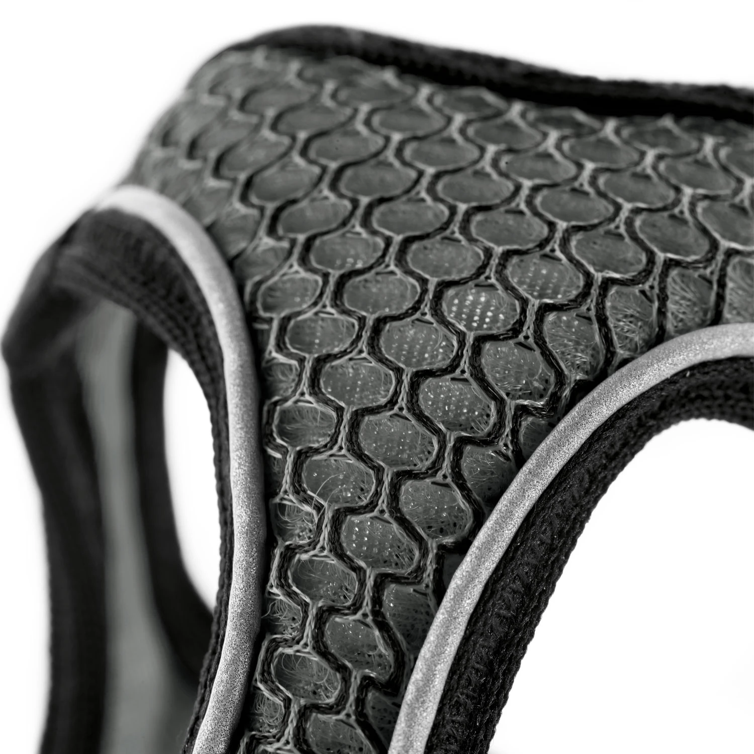 Zwischen den Vorderläufen befindet sich kein störendes Gurtmaterial. Das 3D-Mesh-Material ist nicht nur luftdurchlässig und weich, sondern kann sogar, eingeweicht in kaltem Wasser, für einen Kühleffekt an warmen Tagen sorgen.