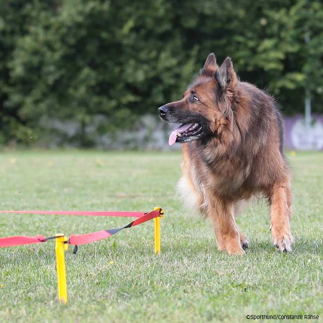 Bei fortgeschrittenen Hunden kann jedes zweite Gurtband entfernt und der Kreis als Hilfe so schrittweise abgebaut werden.