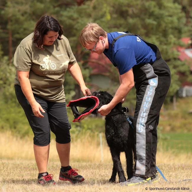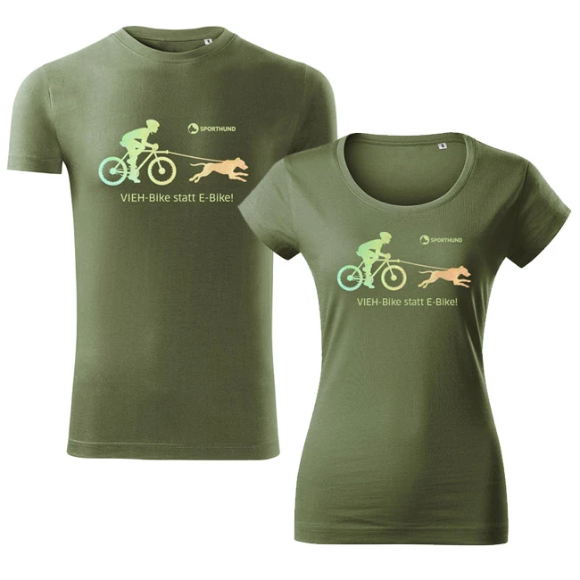 Sporthund T-Shirt „Vieh-Bike statt E-Bike!“ in Männer- und Frauenschnitt erhältlich.